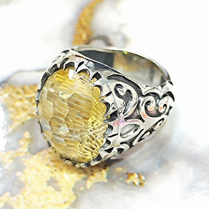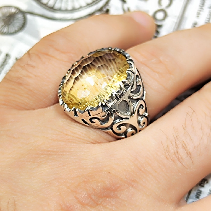 تمام انگشتر های نقره در طلا سازی های کشور قابل سایز شدن میباشند سنگ سیترین طبیعی الماس تراش