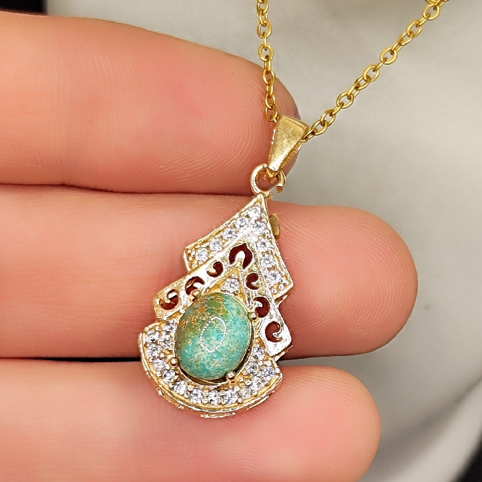 گردنبند زنانه مدل سنگ فیروزه کد 605
