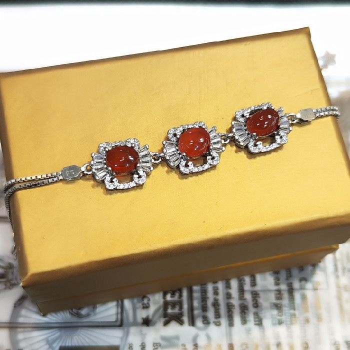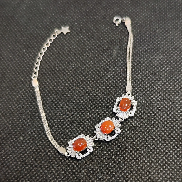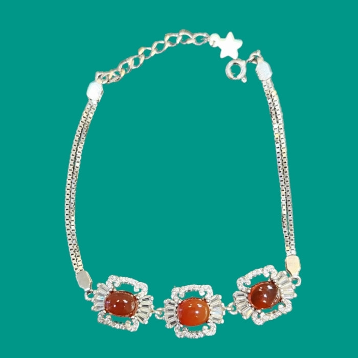 دستبند دارای زنجیر فری سایز هست سنگ عقیق یمانی آبکاری رادیوم