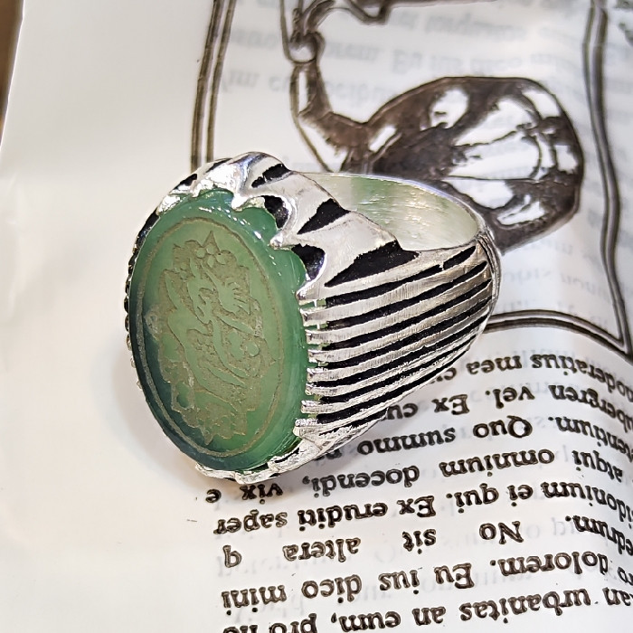 انگشتر مردانه مدل سنگ عقیق خطی کد ۴۳۰۰