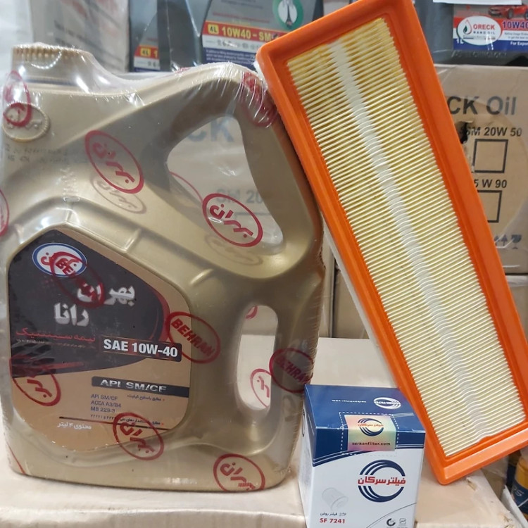 پکیج کامل تعویض روغن پژو 20و207ورانا وپارس TU5به همراه روغن موتور بهران رانا 10w40SM و فیلتر روغن سرکان و فیلتر هوا
