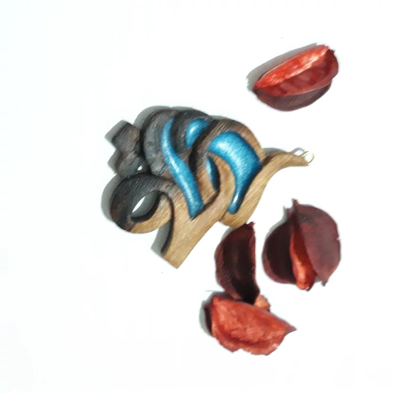 اسم حمید ساخته شده از چوب گردو ترکیب با رزین فیروزه ای معرق منبت شده دستساز چوبکده بیدسفید