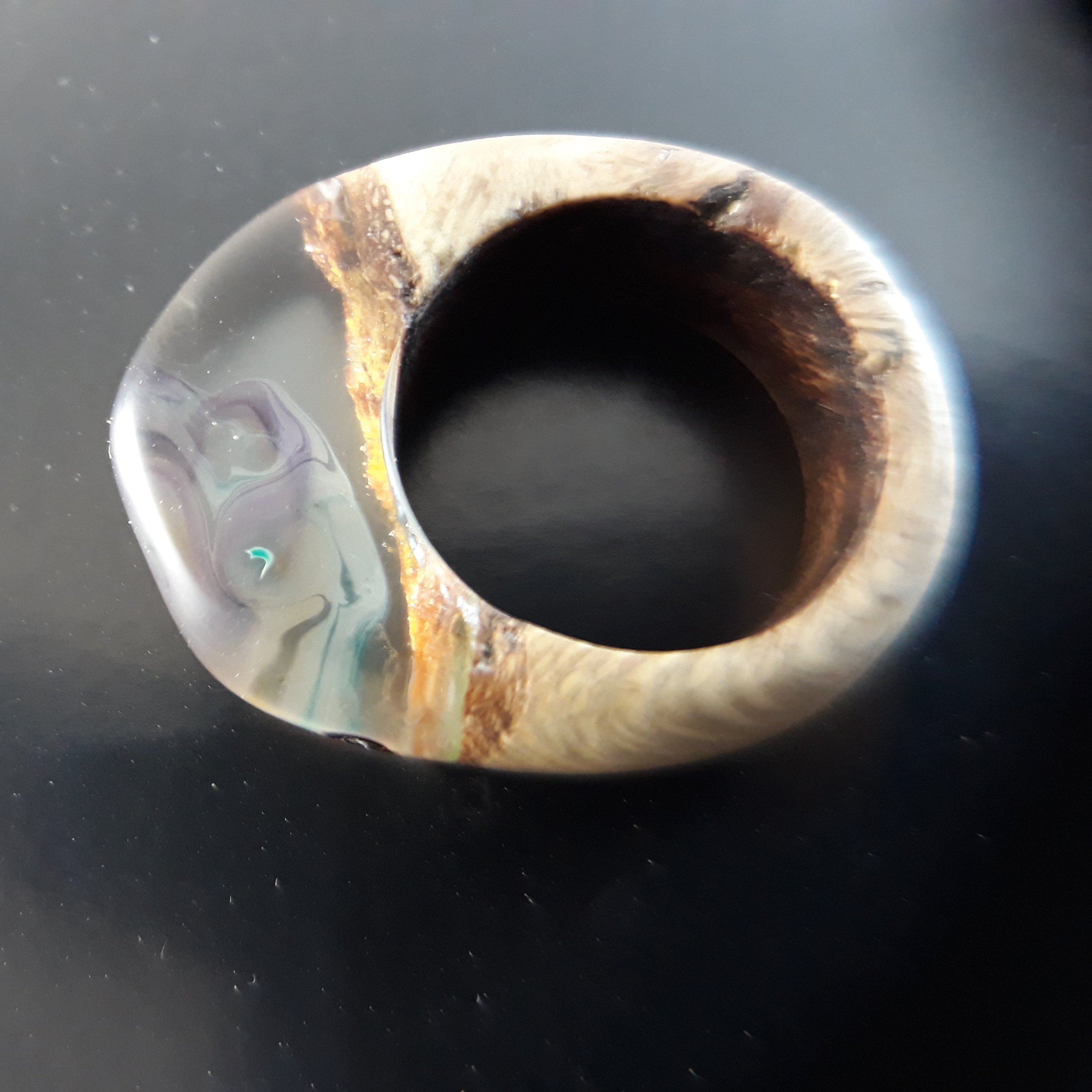 دستسازه ای کاملا خاص ومنحصر به فرد کاملا کار دست که از ترکیب رزین اپوکسی و چوب که طی مراحل مختلفی از برش و ساب و پولیش به نهایت زیبای خود میرسد ودر مرحله اخر برای تثبیت زیبایی از رنگ گیاهی و المانی ازمو استفاده کرده ایم تا یک تیکه ترکیبی از نواوری و طبیعت را به شما تقدیم کنیم این کار به صورت عامیانه به کار چوب و سنگ هم شهرت دارد هر کار خاص و درست کردن مشابه کامل ان غیر ممکن است