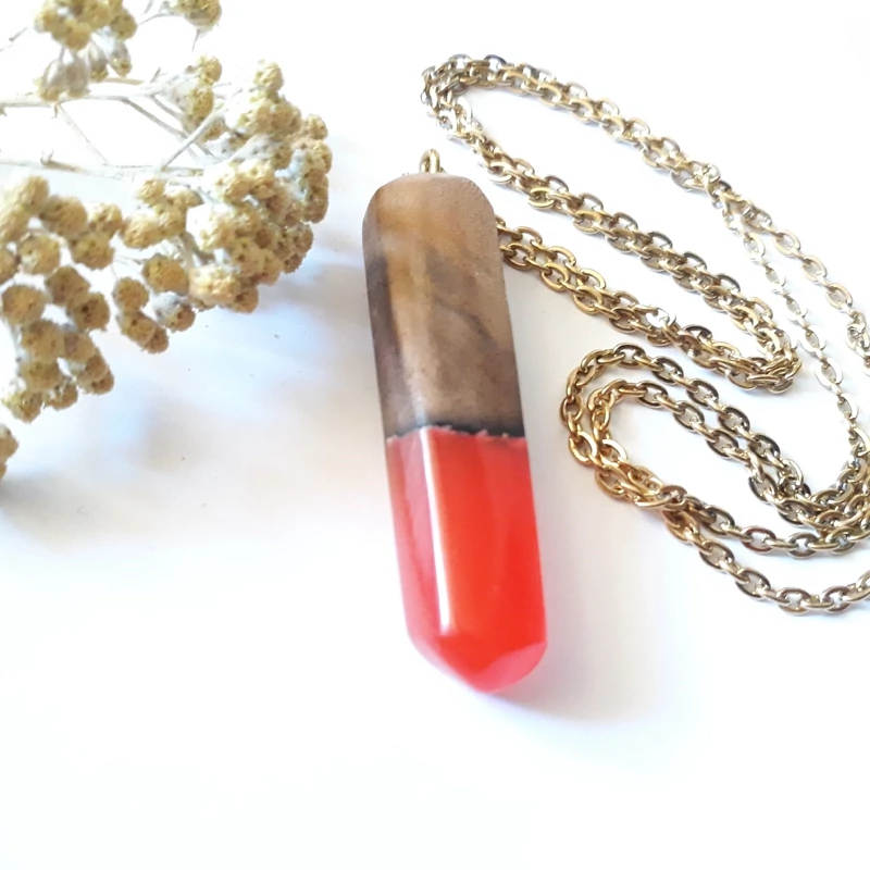 گردن بند رزین و چوب گردو طرح عشق با رنگ سرخ خود حرارت عشق را به صاحب خود منتقل میکند