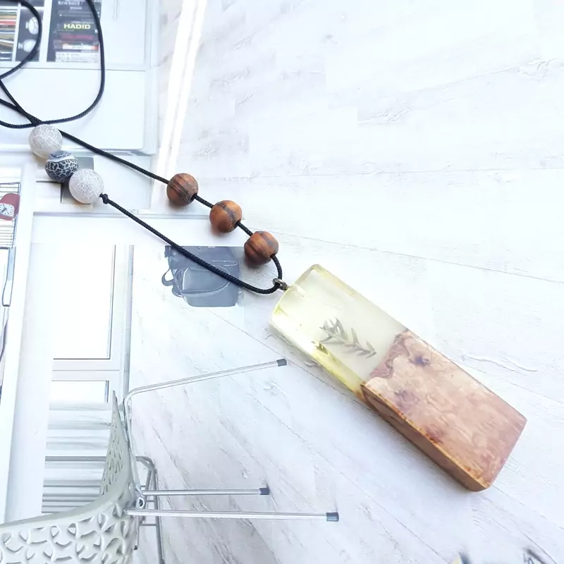 سه مهره لاوا و شش مهره چوبی استفاده شده در بند مشکیکارای انجام شده توسط دست که پوشش نهایی ان رنگ گیاهی ازمو المان مورد استفاده به عنوان گردنبند یا اویز که کاملاکار دست و تناسب رنگ بسیار زیبا و خاص مخصوص خاص پسندان و از خواص سنگ عقیق که سنگی مقدس از قدیم ایام بوده این است که حامی انسان در مقابل حوادث و بلایا به ویژه در جنگ ها میباشد و برای افزایش در امد و رونق کسب و کار واسان شدن کارهابسیار مفید است و برای تقویت نقاط مختلف بدن و برقراری تعادل و هماهنگی در ان ها بسیار مفید است