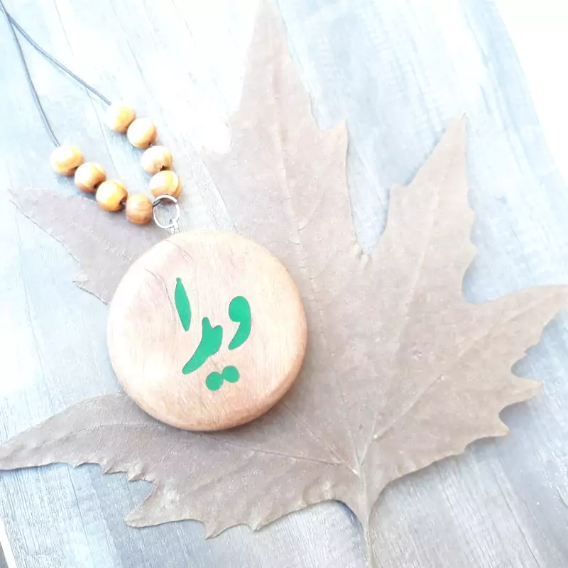 آویز اسم ویدا چوب و رزین دستساز چوبکده بید سفید