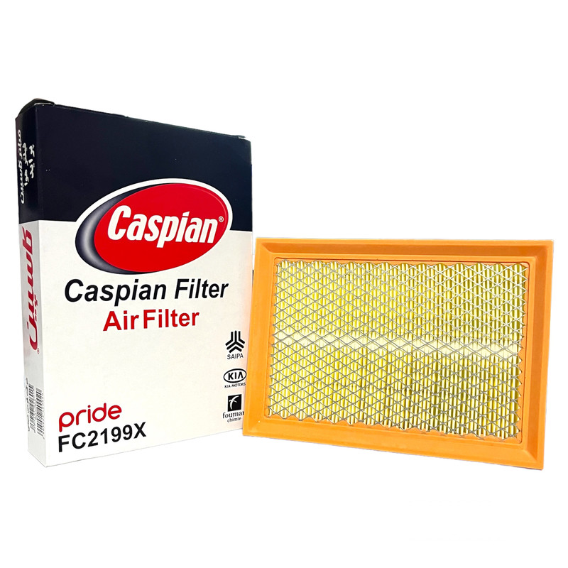 محصول فوق یکی دیگر از فیلترهای تولیدی شرکت باسابقهی «کاسپین» (Caspian) است. این فیلتر هوای خودرو تحت عنوان مدل «FC2199X» به بازار عرضه میشود و از آن میتوان برای چندین خودروی تولید داخل استفاده کرد. از جمله خودروهایی که میتوان این فیلتر را روی آنها نصب کرد پراید 141, پراید نسیم، پراید وانت 151 صبا GLX، پراید صبا CNG، پراید نسیم GLX، پراید نسیم CNG، پراید 141 LBI، پراید 141 DLX و پراید 132 است. این محصول قدرت فیلتراسیون بالایی دارد و مانع از ورود ذرات ریز و گردوغبار هوا به داخل محفظهی احتراق میشود. این ذرات اثر بسیار زیانآوری برای سوزن انژکتور دارند و مانع از عملکرد مناسب آنها میشوند. ابعاد این فیلتر هوای خودروی مکعب مستطیلی شکل 207.2 × 37.5 × 150 میلیمتر است. بهتر است این فیلتر را در هنگام تعویض روغن موتور نیز تعویض کنید تا نفس موتور خودرو بیشتر شود.