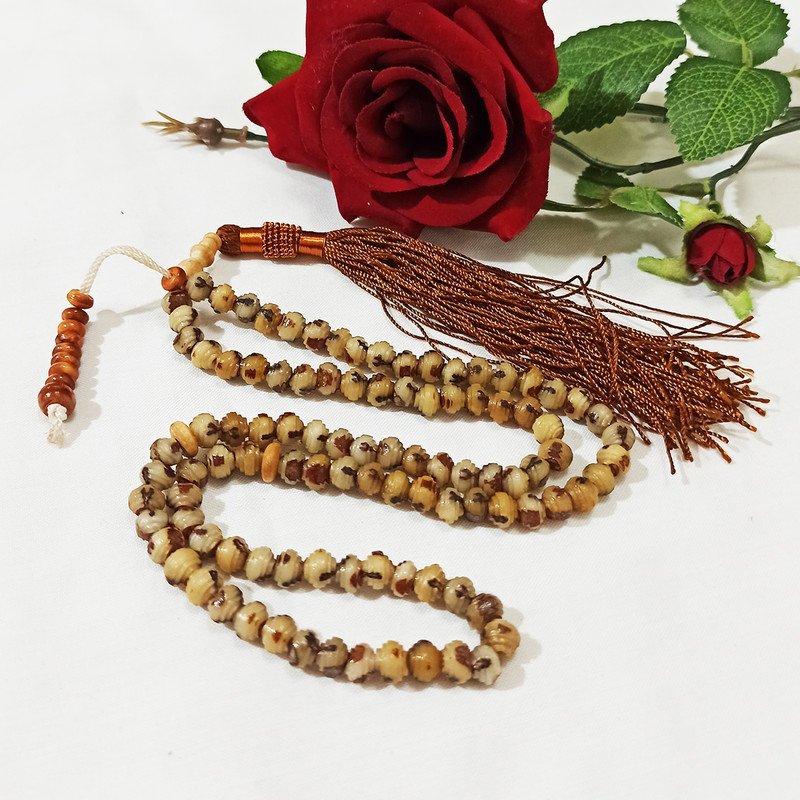 اين تسبيح ، يکي از مدل هاي بسيار زيبا در ميان تسبيح هاي موجود در بازار است . رنگ جذاب اين تسبيح باعث زيبايي هرچه بيشتر آن شده است اين تسبيح از نخ مستحکم تک لايه و سر تسبيح زيبا تهيه شده است که همين امر موجب استحکام بسيار بالاي نخ اين تسبيح گشته است و موجب شده تا اين محصول علاوه بر اين که بسيار کار ظريفي ميباشد، از استحکام بالايي نيز برخوردار باشد تسبيح جز ثابت جا نماز هاي هر مسلماني مي باشد دراغلب زیارتگاه ها و شهر هایی که برای مسلمانان اهمیت دینی دارند تسبیح از انواع سوغاتها به شمار می آید این کالا همراه با باکس سلین کالا و شناسنامه میباشد